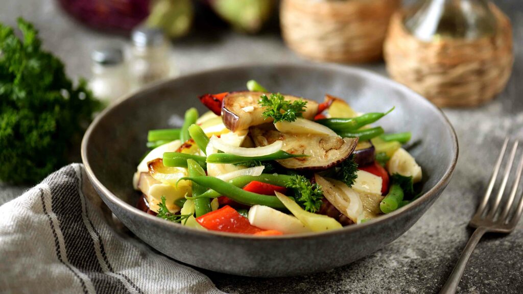 Recept: salade met gegrilde groenten en borlotti bonen