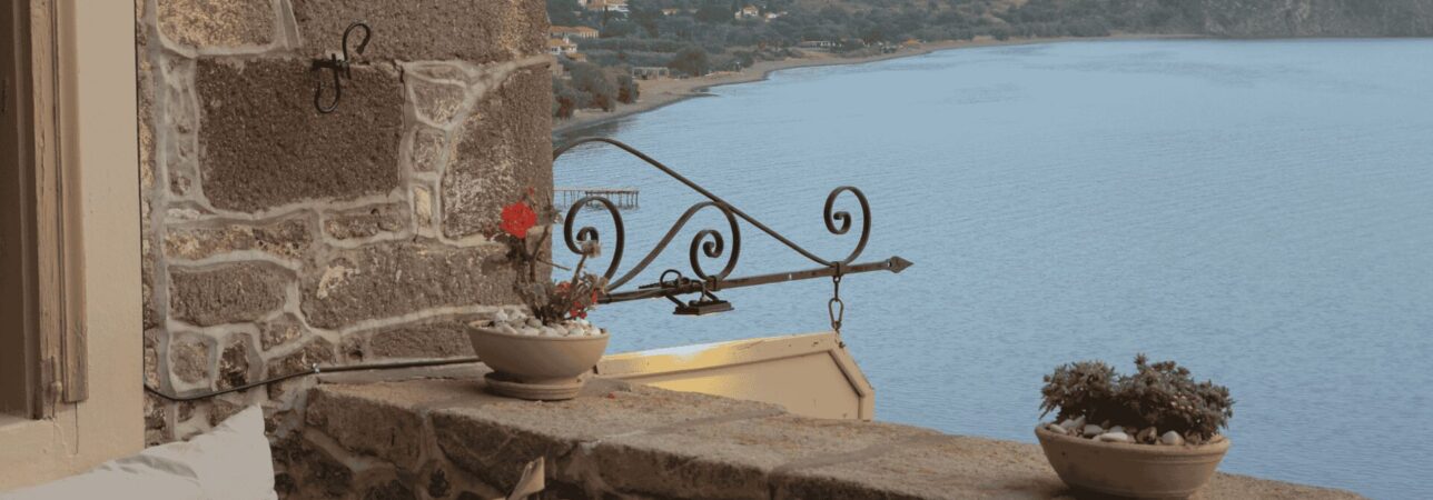 Aan de idyllische baai van Ágios Ermogénis ligt dit charmante visrestaurant verscholen tussen pijnbomen en turquoise water. Hier eet je met je voeten bijna in het zand, terwijl verse inktvis en gegrilde sardientjes op traditionele wijze worden bereid. De sfeer is relaxed en lokaal – precies zoals je het hoopt op Lesbos. Met een glas ouzo en uitzicht op de zonsondergang is dit puur vakantiegeluk.