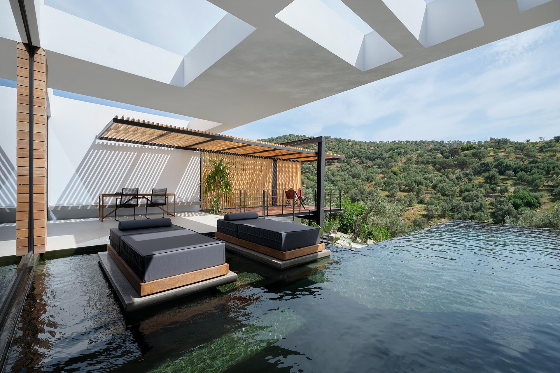 Omgeven door de geur van pijnbomen, die me meteen tot rust brengt, sta ik op het terras van mijn villa. Voor me schittert het privézwembad in het zonlicht en ik kan niet wachten om er straks in te duiken. Het moderne design, de stilte om me heen en het uitzicht over het eiland maken dit tot een droomplek. Wat me hier meteen opviel, is hoeveel liefde en aandacht er in elk detail zit. Panagiotis, de architect en eigenaar, ontwierp de villa’s zelf – en dat voel je. En Maria? Die zorgt met een glimlach dat je je nergens druk om hoeft te maken. A-Luxury Villas is een van de meest luxe en verfijnde verblijven op Lesbos. De moderne villa’s liggen op een ruim privéterrein van 7.500 m² en bieden alle rust, ruimte en comfort voor een ontspannen vakantie. Er zijn verschillende stijlvolle types om uit te kiezen, elk met een privézwembad en een elegante inrichting. Sommige villa’s beschikken over een luxe binnenjacuzzi en anderen hebben een vrijstaand bad. Enkelen bieden zelfs extra buitenruimte. Denk aan royale veranda’s, fijne loungestoelen en een sfeer van totale privacy. De charmante dorpjes en verborgen strandjes in de buurt maken het vakantiegevoel compleet.