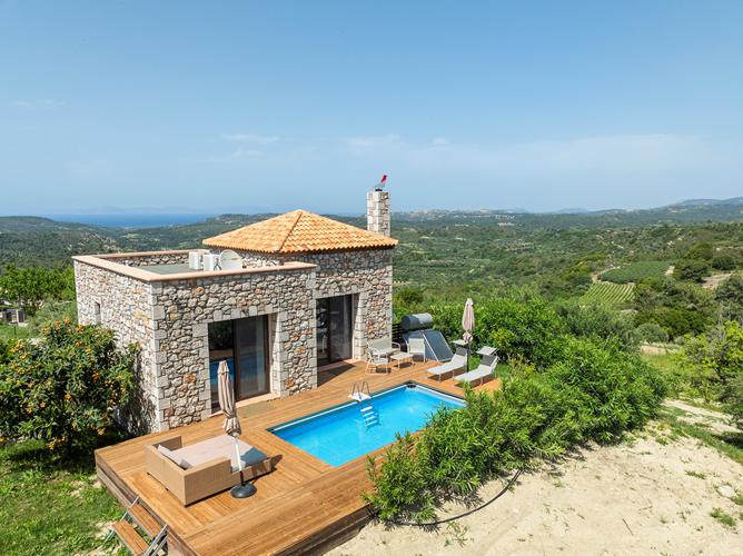 Dit is een van mijn meest mooie nieuwe ontdekkingen op Rhodos, Villa Salakos. Toen ik hier aankwam, voelde ik gelijk de oase van rust die hier heerst. Het landschap lijkt hier net een tekening, zo prachtig de schilderachtige bergen die mij omringen. Mijn glimlach groeit met de minuut. Ik open de deur van de stenen villa en ik kom binnen in een woonkamer die in Griekse klassieke stijl ingericht is. Hier kan ik mij wel thuis voelen! Ik koos voor de villa met privézwembad, in de tuin vallen mijn ogen daar direct op en ik kan niet wachten om zo een duik te nemen. Ook is er een overdekt terras waar ik van de schaduw kan genieten. De villa is tot in de puntjes verzorgd, met een warme inrichting, prachtige kunstwerken en robuuste stenen muren. 's Avonds, als de laatste zonnestralen verdwijnen achter de bergen, steek je de barbecue aan en geniet je samen met je gezelschap van de perfecte zomeravond.
