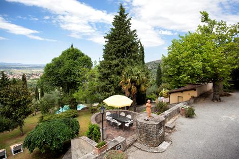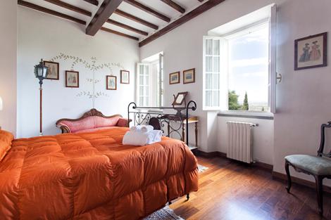 Vlak voor het mooie stadje Cortona, op 700 meter, sla je rechtsaf een smal weggetje in. Je rijdt rustig door en bij de poort ga je naar binnen. En dan treed je binnen in de statige, warme en prachtige wereld van Villa Serenella. Het landhuis was vroeger het buitenverblijf van een aristocratische familie die deze plek speciaal uitkoos. En dat begrijp je direct: het ligt op de heuvel en het uitzicht is prachtig. Op het terrein staan de twee dependances van het landhuis die vroeger allebei een andere rol vervulden. In de mooie tuin is een zwembad.
