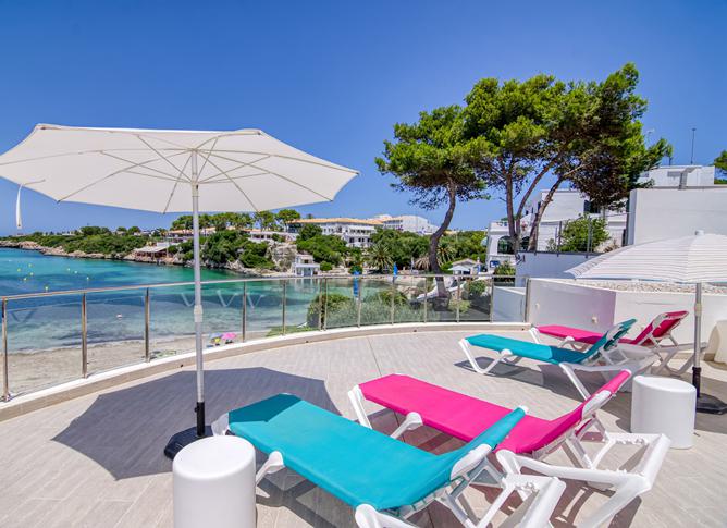 Ik voel me helemaal op m'n gemak in het mooie Hotel Playa Santandria. Dit adresje heeft een bijzondere geschiedenis en dat maakt het zo speciaal om hier te verblijven. Het plaatsje Santandria was in de jaren '60 een toeristisch, gastronomisch centrum voor families uit Ciutadella. De grotten die zich hier bevonden, werden omgebouwd tot kleine zomerhuisjes, waarna ook de eerste restaurants werden geopend. In deze periode werd ook dit verblijf opgericht, maar toen nog als hotel Ses Set Voltes, oftwel De zeven bogen, toendertijd de basis voor de architectuur op het eiland. Iedere dag begin ik op dit geweldige plekje met een heerlijk ontbijt, terwijl ik uitkijk over de werkelijk prachtige baai. Daarna droom ik ook nog even weg bij dit uitzicht op een van de ligbedden op het terras. Ik zit hier pal aan het strand en het hotel heeft een zwembad voor een fijne, frisse duik. De kamers zijn ook nog eens erg rustgevend en modern ingericht. Er zijn zelfs kamers met zeezicht, wauw! Bovendien worden in de chiringuito, die onder het hotel zit, de allerlekkerste maaltijden verzorgd. Je hoeft eigenlijk de deur niet uit tijdens een vakantie in dit fijne hotel...